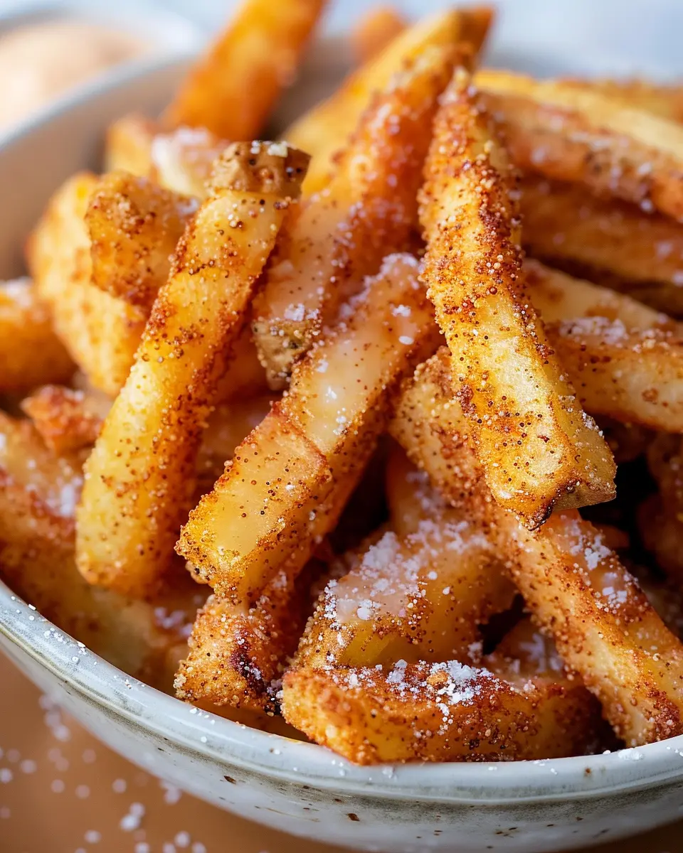 After your apple fries are cooked to perfection, gently toss them in this heavenly mixture while they’re still warm. The result? A deliciously crunchy outer layer that perfectly complements the tender apple inside. For an extra touch, consider drizzling some caramel sauce on top for a dessert that feels indulgent but remains guilt-free.