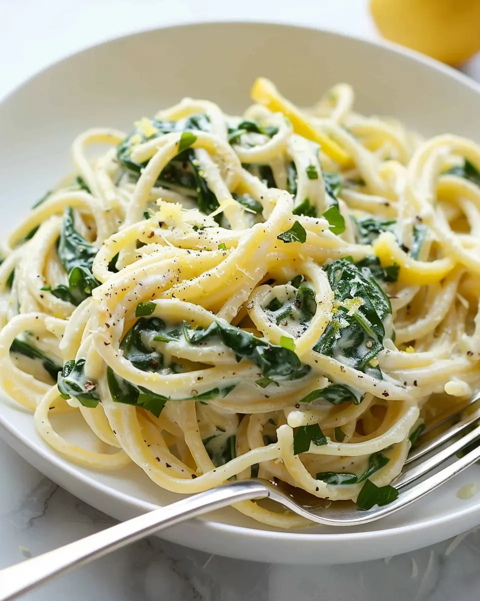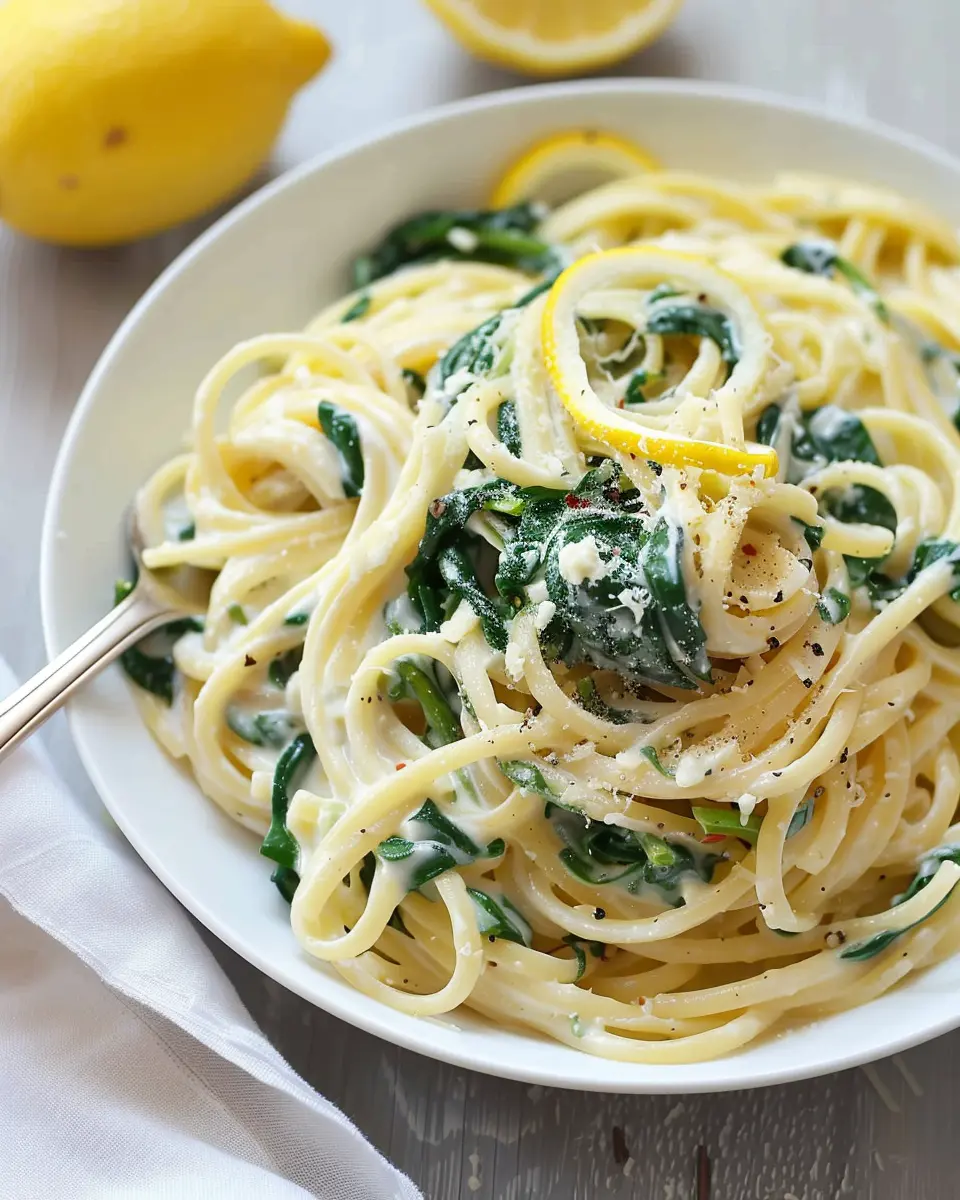 A creamy and zesty lemon ricotta pasta tossed with fresh spinach, perfect for quick weeknight dinners.