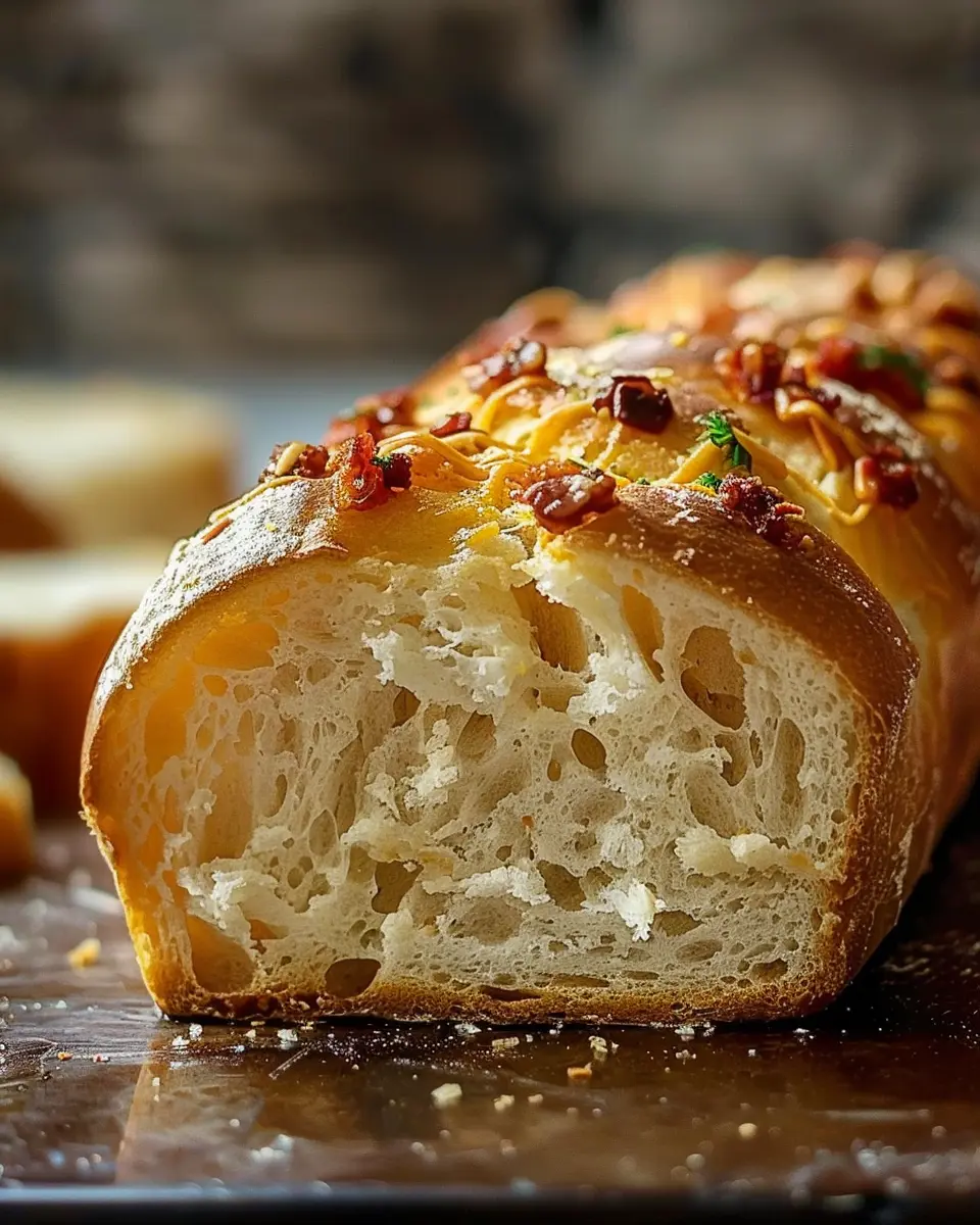 Enjoy a delicious blend of flavors in this garbage bread recipe featuring turkey bacon and chicken ham.