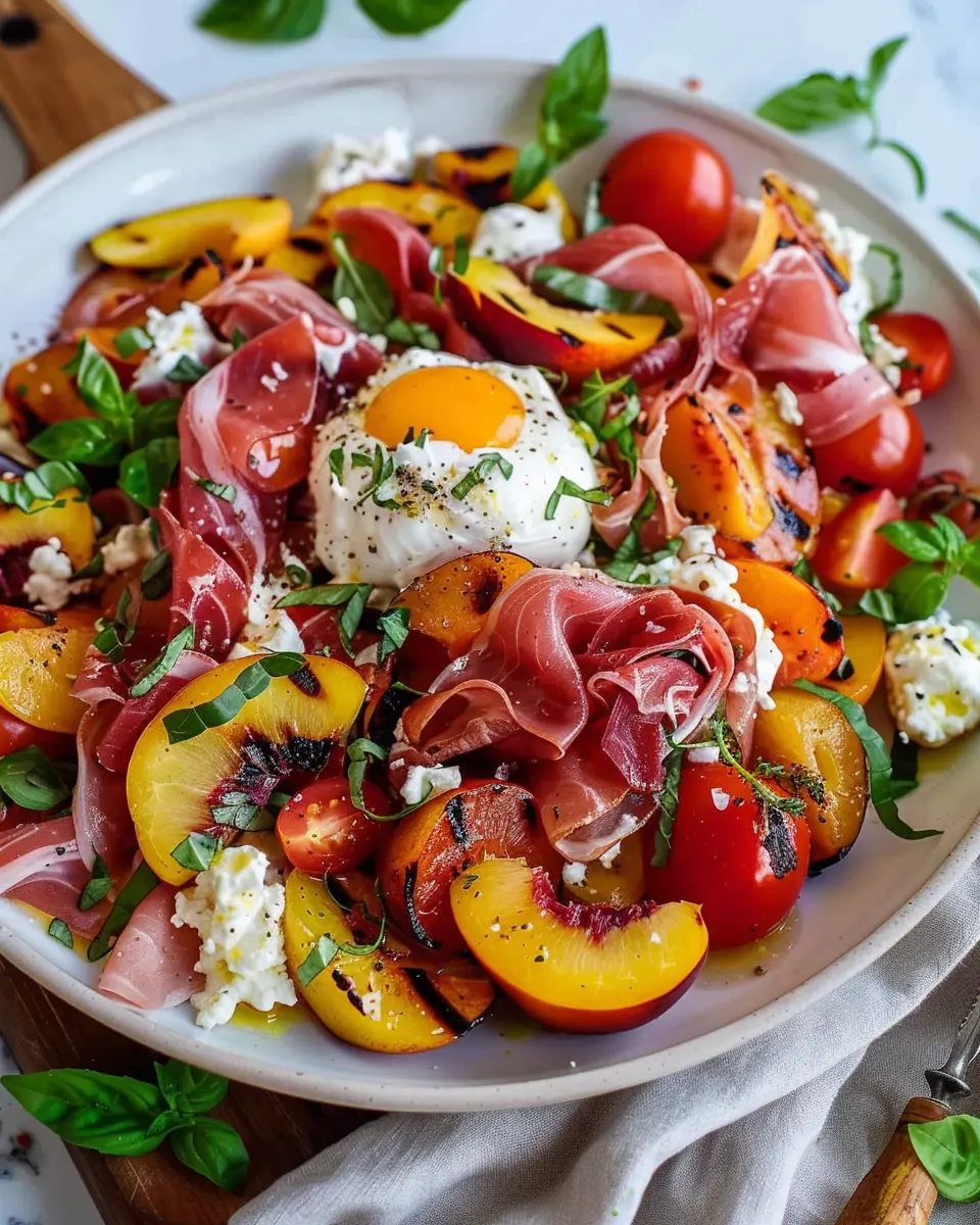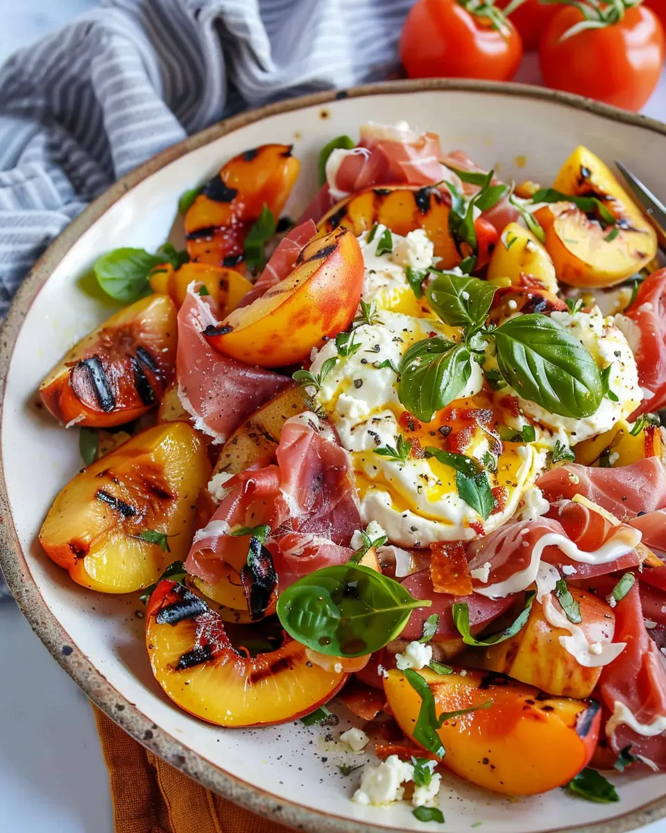 Creating a mouthwatering Grilled Nectarine Burrata Prosciutto Salad is a delightful experience that’s perfect for summer picnics or relaxing evenings. Each bite brings together the sweetness of grilled nectarines, the creaminess of burrata, and the savory flavors of prosciutto. Let’s dive into the steps to prepare this delicious dish together!