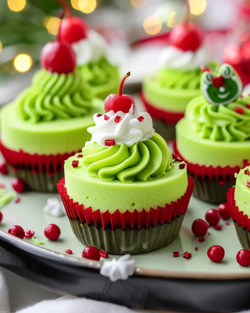 When it comes to showcasing your Grinch mini cheesecakes, presentation is key. Use festive cupcake liners in bright colors to enhance their cheerful appearance. Arrange them on a decorative platter, garnishing with fresh mint leaves or scattered red and green sprinkles for a pop of color. For an extra touch, consider drizzling some chocolate sauce or a raspberry coulis around the cheesecakes for an inviting visual.