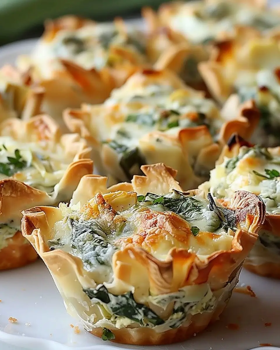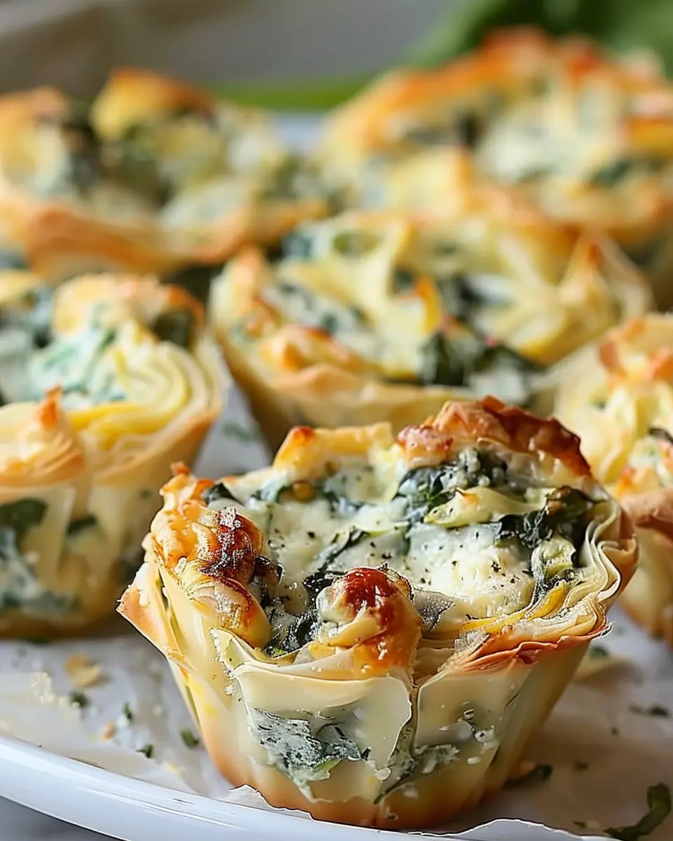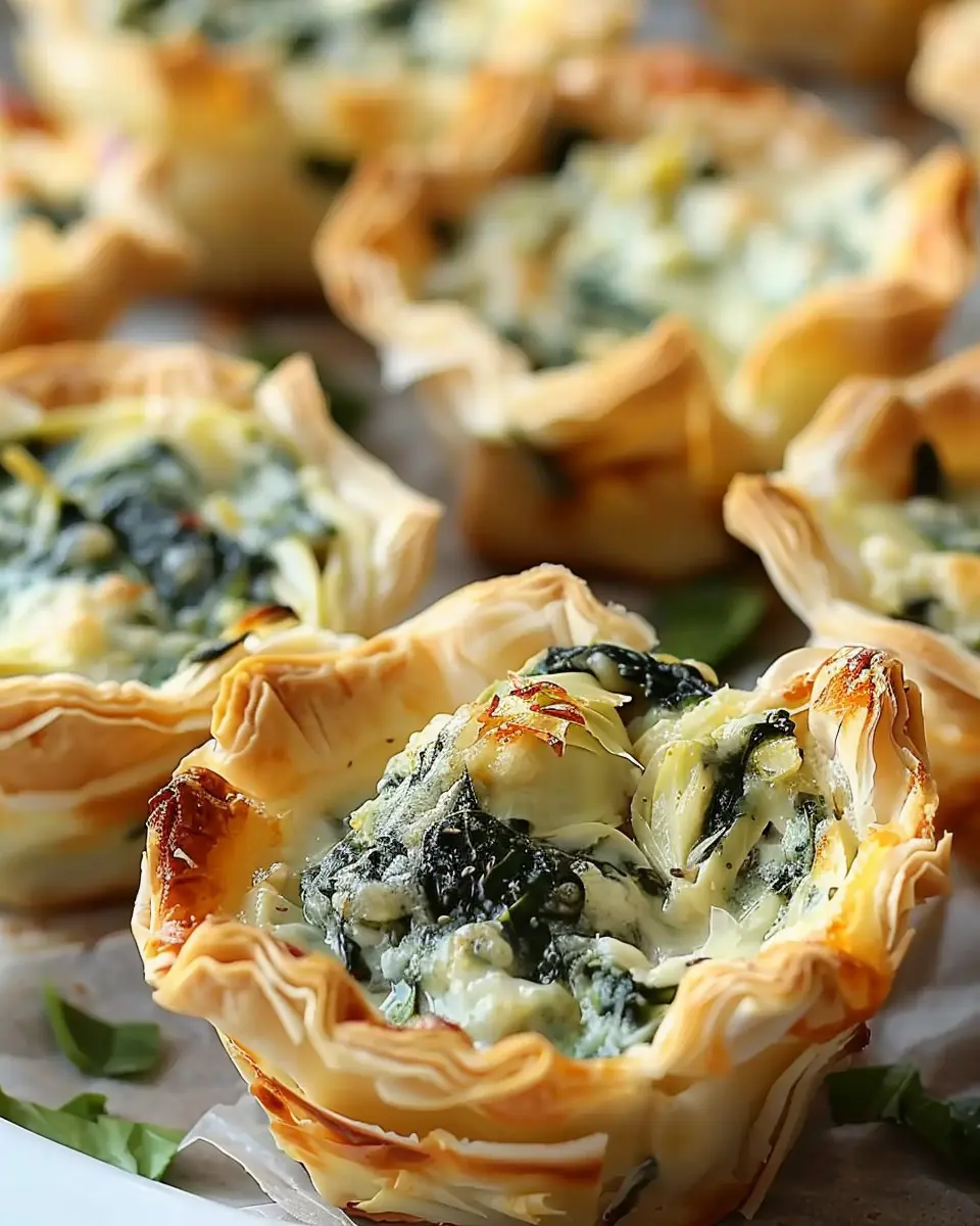 Certainly! If phyllo dough isn’t your thing, you can use other bases. For example, you could use pre-made pastry shells or even mini tortilla cups for a fun twist. Alternatively, if you’re looking for a gluten-free option, consider using cooked and cooled polenta to create little cups. The key is finding a vessel that can hold the delightful spinach and artichoke goodness without falling apart.
