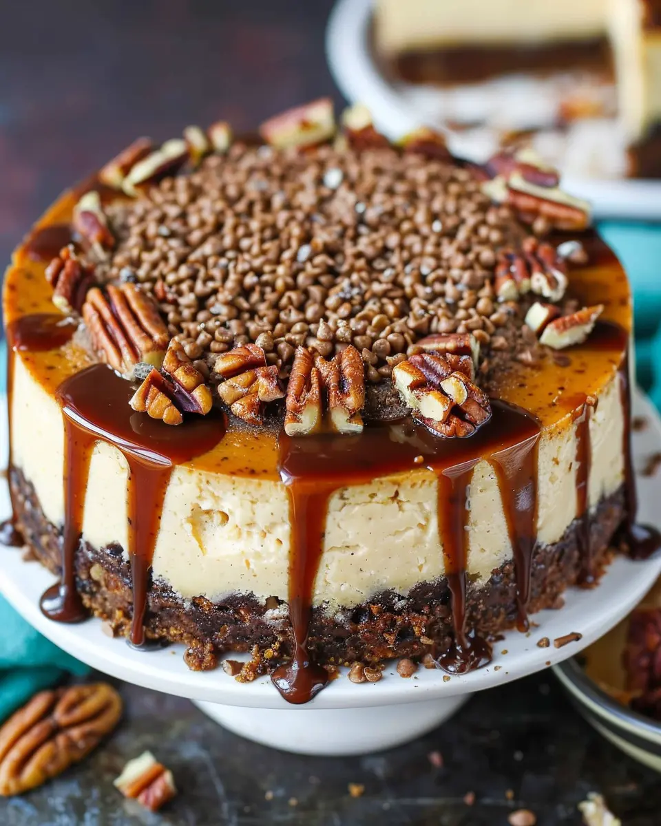 Indulge in the rich flavors of Turtle Cheesecake, a dessert that combines creamy cheesecake with chocolate, caramel, and nuts.