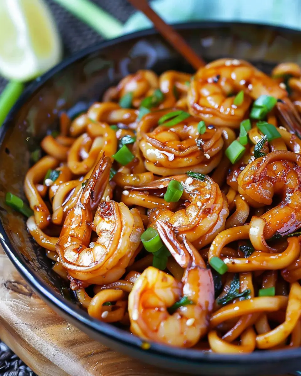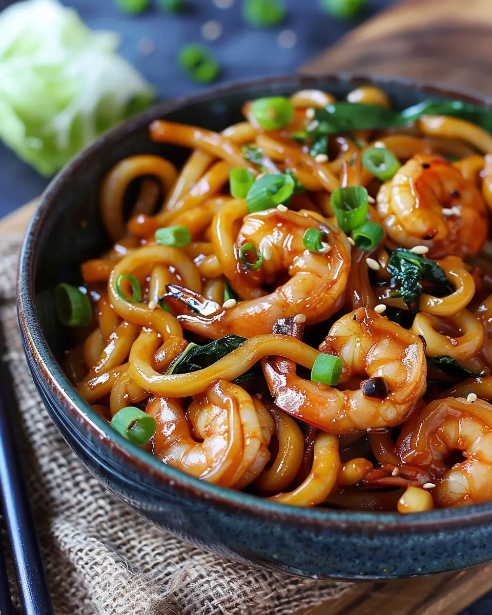 Health Benefits: Udon noodles are made from wheat flour and are lower in calories compared to many pasta options. Shrimp is an excellent source of protein and omega-3 fatty acids, making this dish both delicious and healthy.